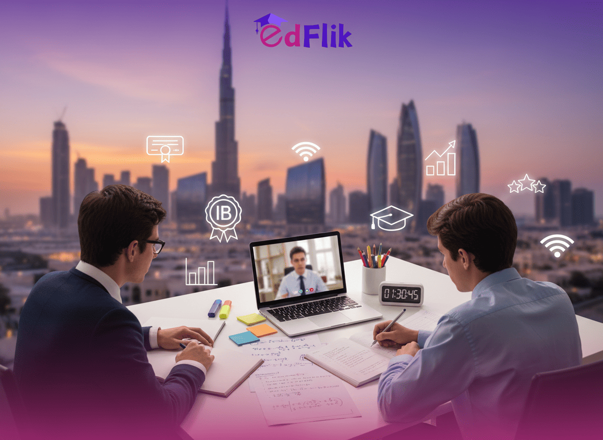 EdFlik provides live 1:1 online IB final exam tutoring across the UAE (Dubai, Abu Dhabi, Sharjah, Ajman, Ras Al Khaimah, Fujairah, Umm Al Quwain).With EdFlik, you get: